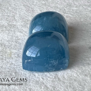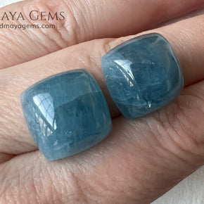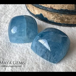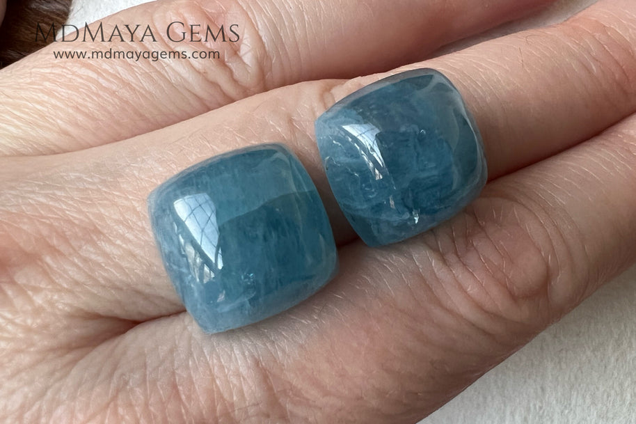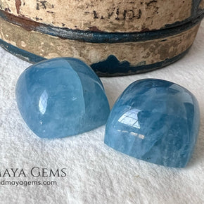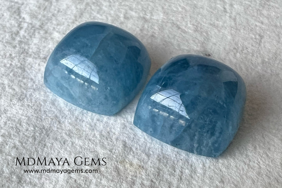 This attractive pair of greenish blue aquamarines totals 36.60 ct, with each gem beautifully shaped in a square cabochon cut (approx. 15 mm each). Their medium-light tone and moderately strong saturation create a rich, deep blue-green color that stands out in jewelry, especially earrings. These gems have undergone fissure-filling treatment, making them an accessible option for those seeking a striking look at an excellent value. While their gemological quality is considered commercial, their appearance when mounted is elegant and refined. Additionally, we offer a matching aquamarine that complements this pair perfectly, ideal for those looking to create a complete set. Aquamarine, the birthstone for March, is traditionally associated with tranquility and calm — making this pair not only beautiful but also meaningful.