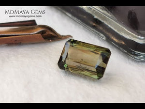 Bicolor Green Tourmaline 2.33 ct – Olive & Peach, Emerald Cut