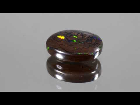 This 3.06 ct Australian Solid Matrix Boulder Opal is a true gem of contrasts—compact like a coffee bean, yet alive with vivid neon veins that flash red, orange, yellow, green, and violet under the light. Its rich brown matrix highlights the fiery play-of-color, making it both earthy and electric.