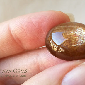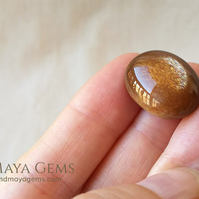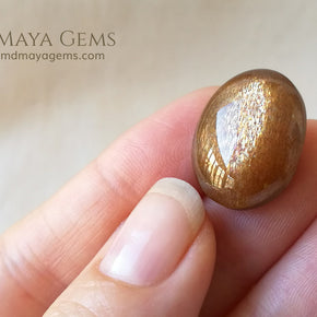 Impressive 21.12 ct sunstone cabochon with strong aventurescence and warm golden-orange tones. A rare, untreated gem ideal for custom statement jewelry.