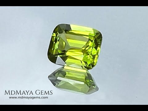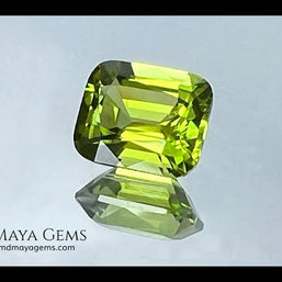This 5.03 carat cushion-cut peridot showcases the gem’s classic beauty with a medium-light, vivid strongly yellowish green hue (GIA color code 11/4/6). The proportions of 10.73 × 8.90 × 6.39 mm create an elegant balance, while its very good cut enhances brilliance and light return.