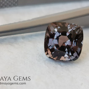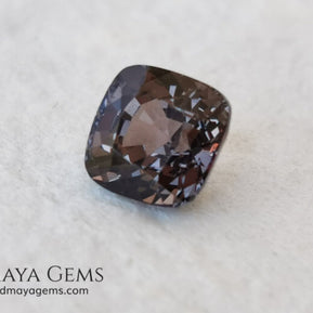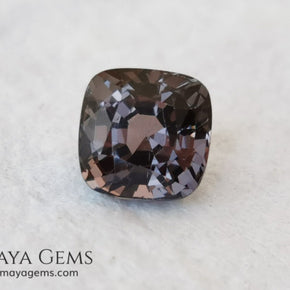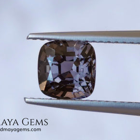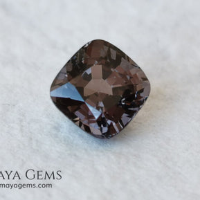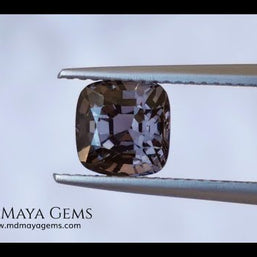 This 1.97 ct natural purple spinel, cut in a balanced square cushion shape, offers a striking combination of brilliance and depth. Its reddish-purple hue—subtle yet captivating—is enhanced by medium-dark tone and a brownish-grayish saturation that gives the gem a sophisticated, smoky character.