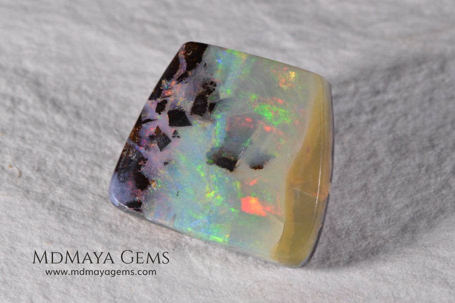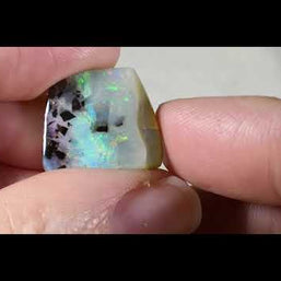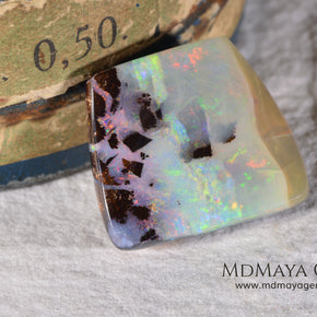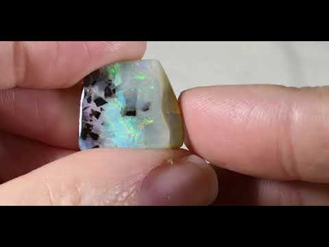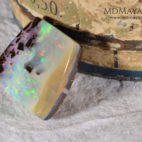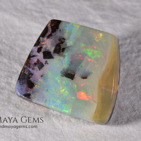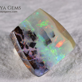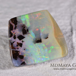 This 12.31 ct Australian boulder opal is a spectacular gemstone, with a pattern that evokes a cosmic landscape—like a galaxy dotted with meteorites and vibrant nebulae. The black matrix contrasts beautifully with the vivid play-of-color, showcasing flashes of red, lilac, orange, blue, and green. Polished on both sides, this opal offers design flexibility and visual depth. A true natural wonder, perfect for creating a statement ring or pendant.
