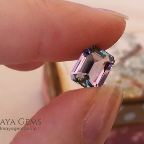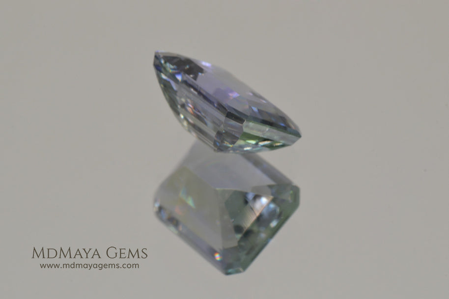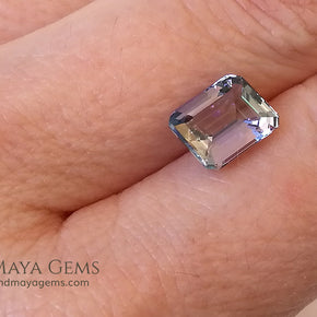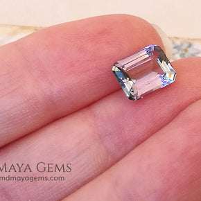 This 2.50 ct tanzanite is a captivating example of the gem's pleochroic nature, revealing a dynamic play of violet, blue, and green tones—especially under varied lighting. The clean emerald cut enhances its transparency and internal color shifts, giving the stone a crisp, architectural elegance.