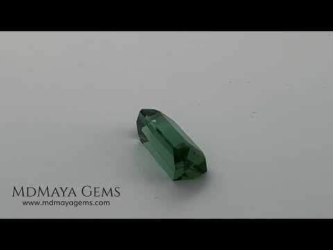 This 1.10 ct natural bicolor tourmaline reveals a beautiful transition between green and bluish hues, accentuated by its precise emerald-style cut.
