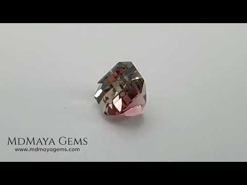 Elegant bicolor tourmaline with green-yellow and reddish-pink hues that blend into a coppery rose gold. Asscher cut, unheated, and beautifully luminous.