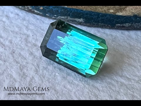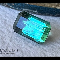 Natural Afghan tourmaline of 1.55 ct showing a striking bicolor play of blue and green hues.