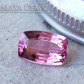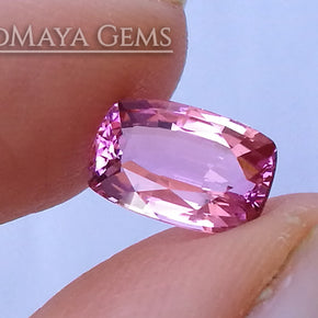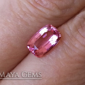 Bright Pink Tourmaline from Mozambique. This 1.71 ct gemstone features a soft, luminous pink hue and a cushion cut with brilliant luster. Though it has a small window, the effect makes it appear larger—ideal for those who love bold looks in a modest carat size.