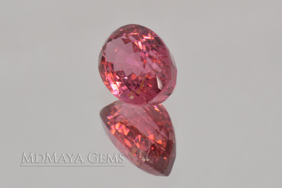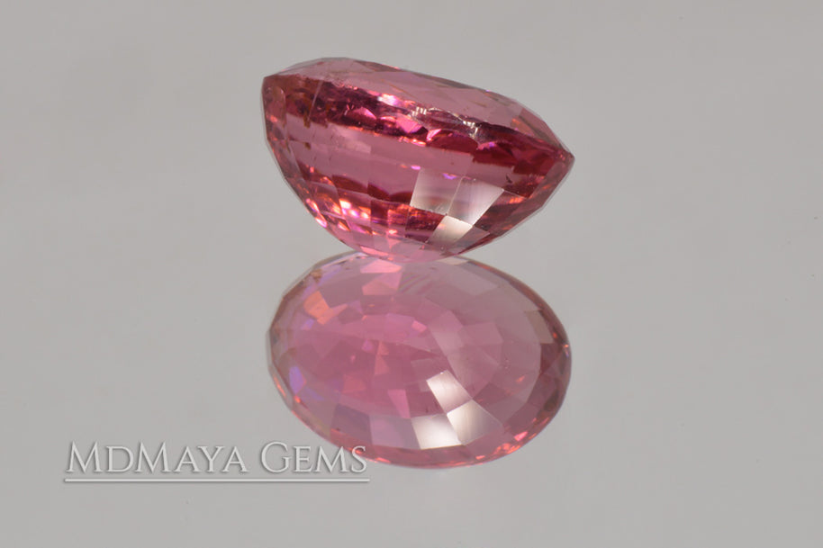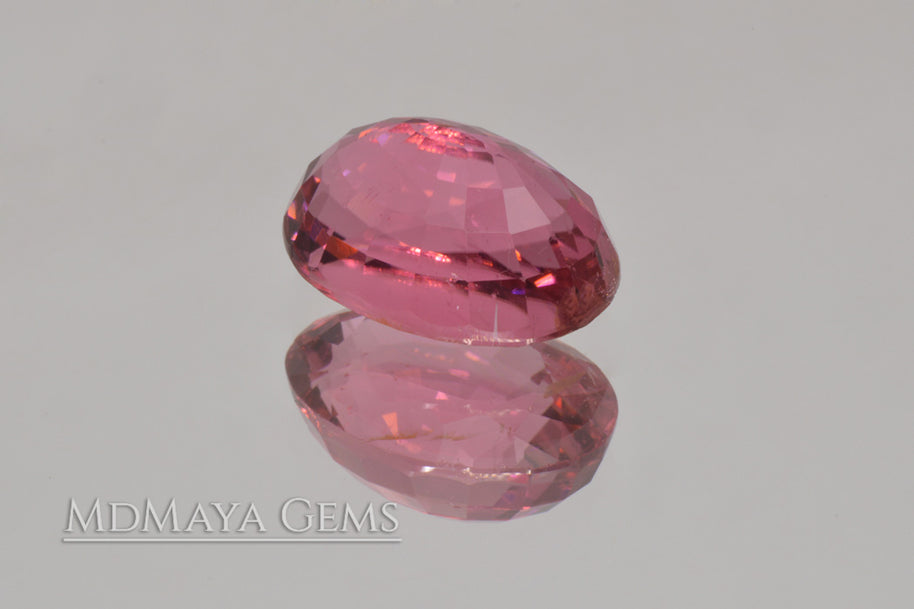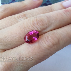 5.02 ct rubellite tourmaline, oval cut, untreated. Vivid hot pink with slight inclusions—brilliant in all lighting, perfect for standout jewelry.
