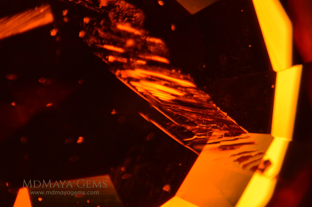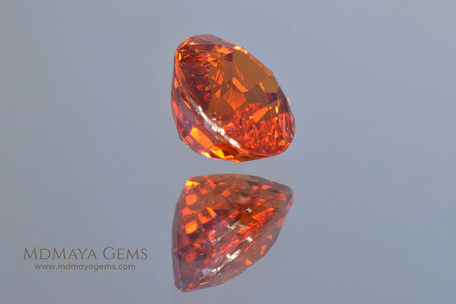 The color is a fiery yellowish-orange (yO), with medium-dark tone and vivid saturation (6/6)—radiant and full of life. There are no brownish undertones, just pure, glowing orange that lights up the entire gem.