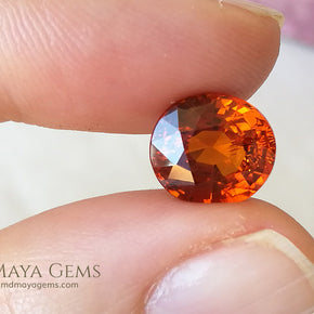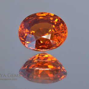 This remarkable Spessartite Garnet combines size, brilliance, and exceptional color in a way few gems can. Weighing 5.26 carats, it offers an ideal oval shape—well-proportioned, with no windowing—designed to maximize brilliance and saturation.