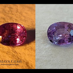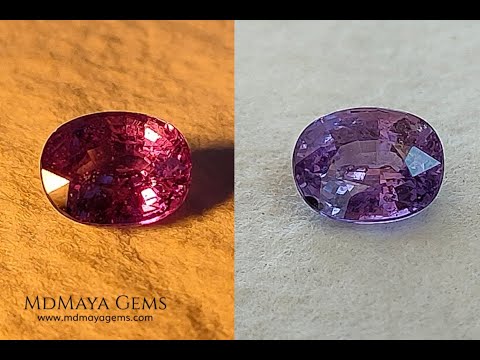 This natural color change sapphire weighs 1.38 carats and features a classic oval cut. Under daylight, it reveals a beautiful violet hue, while incandescent light brings out an intense purplish tone—an optical phenomenon highly sought after by collectors and designers alike.