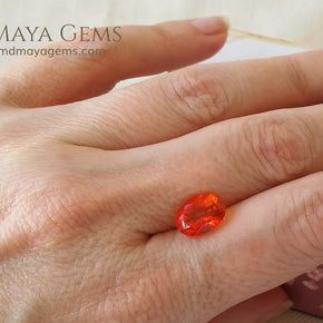 This 2.04 ct Mexican fire opal captures attention with its charismatic presence and vibrant orange color. Expertly cut in an oval shape, it shows high brilliance and excellent transparency, enhanced by a slightly cloudy zone that adds depth without affecting its sparkle. With a medium-light tone and vivid saturation, this gemstone radiates warmth and energy, making it ideal for personalized jewelry—especially rings and pendants designed to stand out.