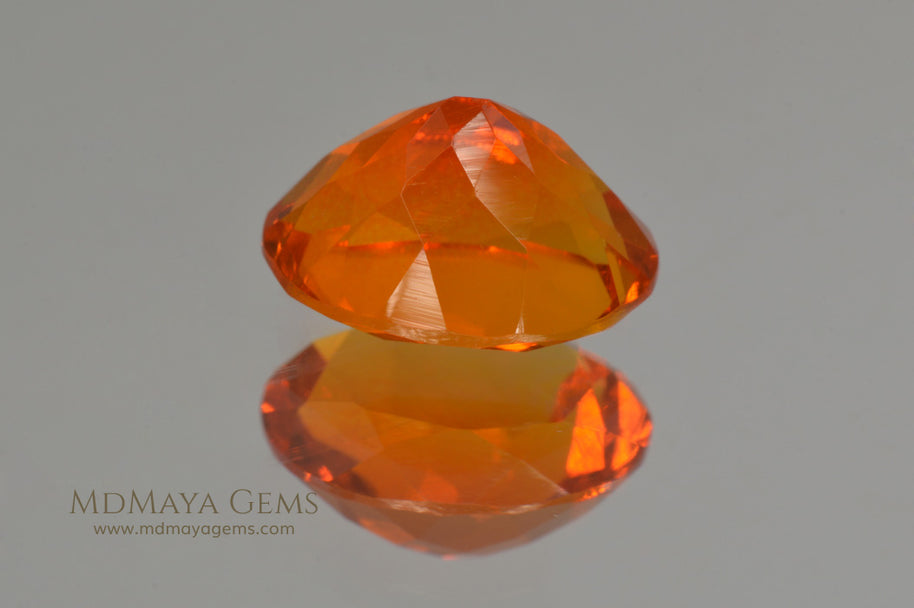 A vivid orange Mexican fire opal with exceptional brilliance and clarity. Perfect for a one-of-a-kind ring or pendant.