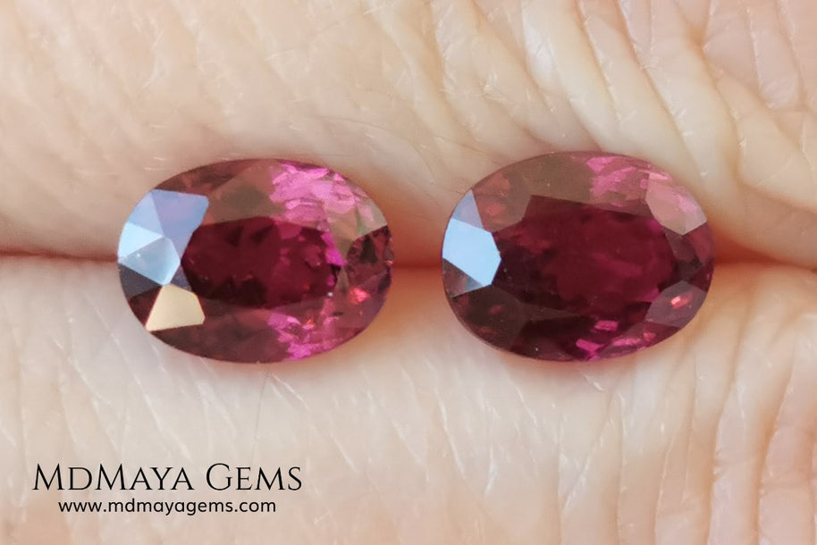 Purple-Red Rhodolite Garnet Pair – 3.41 ct – Oval Cut