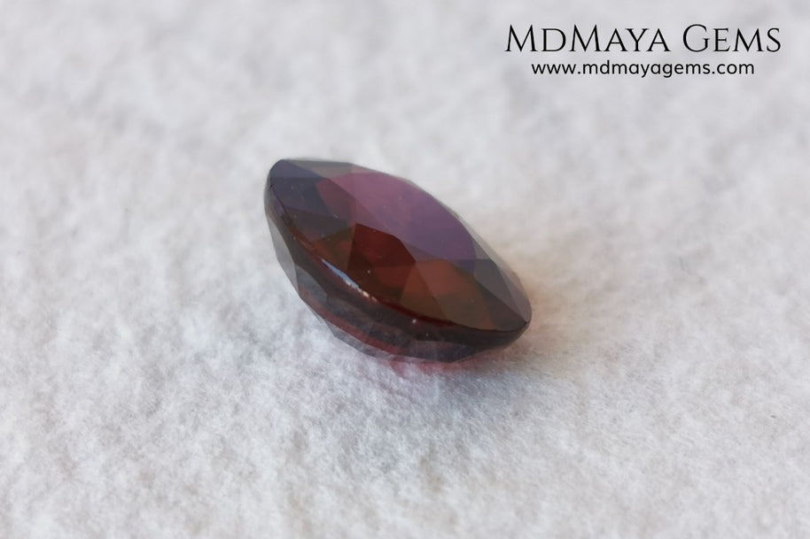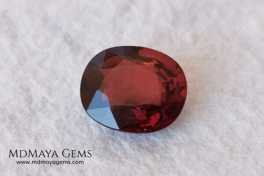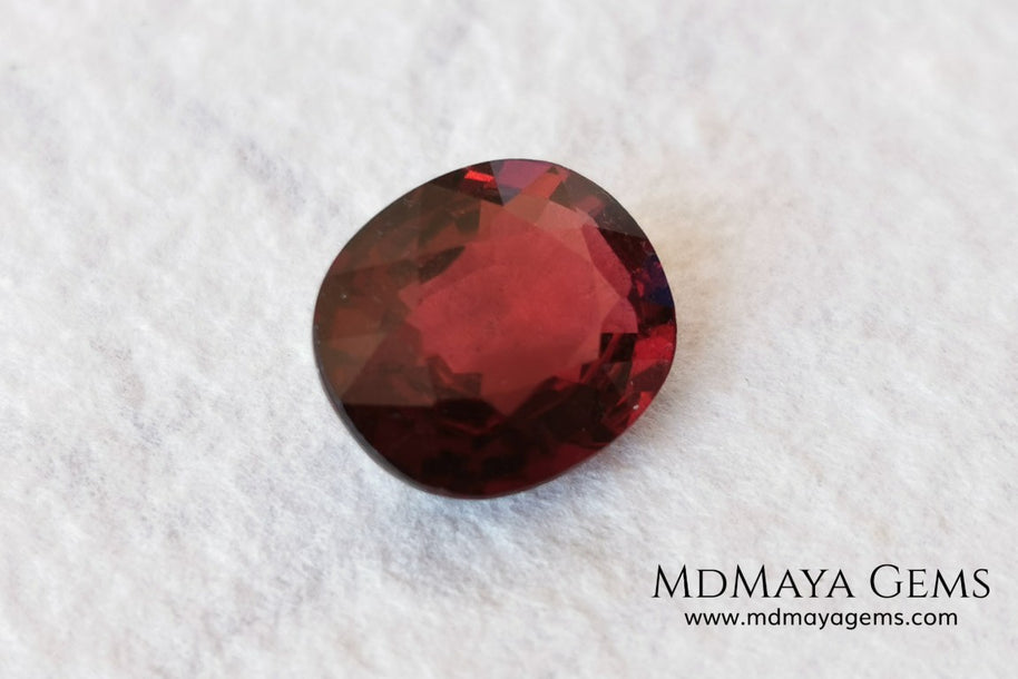 Dark Red Rhodolite, 5.09 ct, oval cut. Elegante dark natural and untreated gemstone.