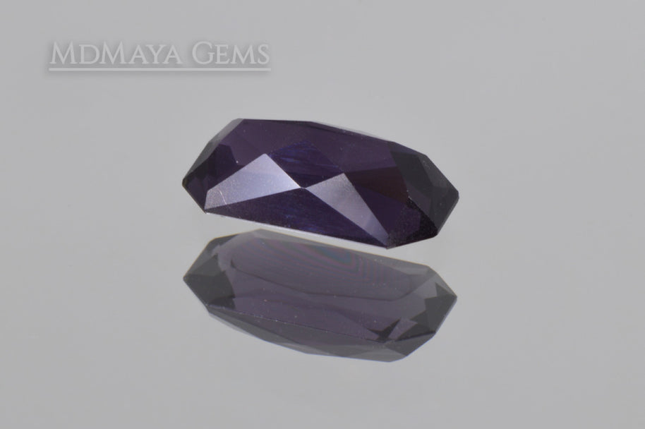This 1.47 ct spinel from Sri Lanka showcases a beautifully dark violet hue, with a medium-dark tone and just a touch of brownish-gray. Expertly cut in a clean, elongated rectangle, it offers excellent brilliance and a striking presence on the finger. With no visible inclusions to the naked eye and no signs of treatment, this gemstone is a fine choice for sophisticated settings—especially for men’s rings or anyone who favors darker gems.