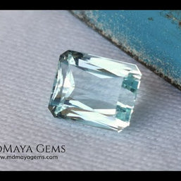 This elegant 3.08 ct aquamarine features a refined emerald cut (9.25 × 7.64 mm) and a soft light blue hue with gentle greenish undertones. Its very good cut and clean proportions give it exceptional brilliance and clarity, with only a fine feather inclusion that remains discreet to the naked eye.