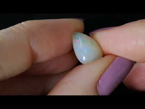 Natural Ethiopian Welo opal of 2.77 ct with a light crystal base and vibrant firework play-of-color. A high-quality pear cabochon, delicate yet dazzling.