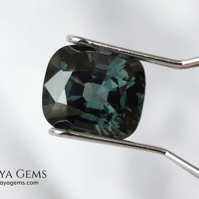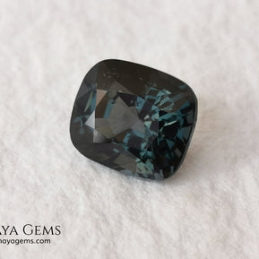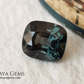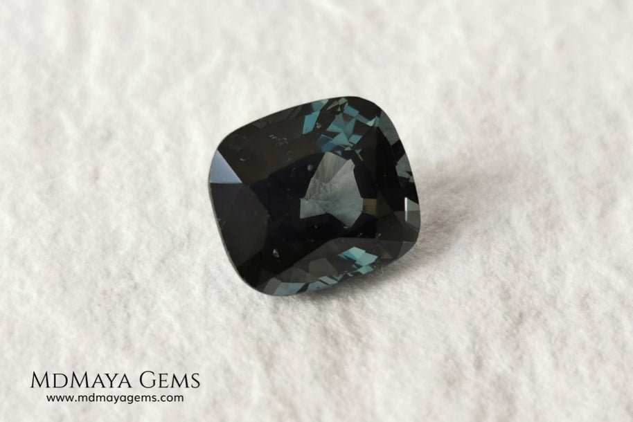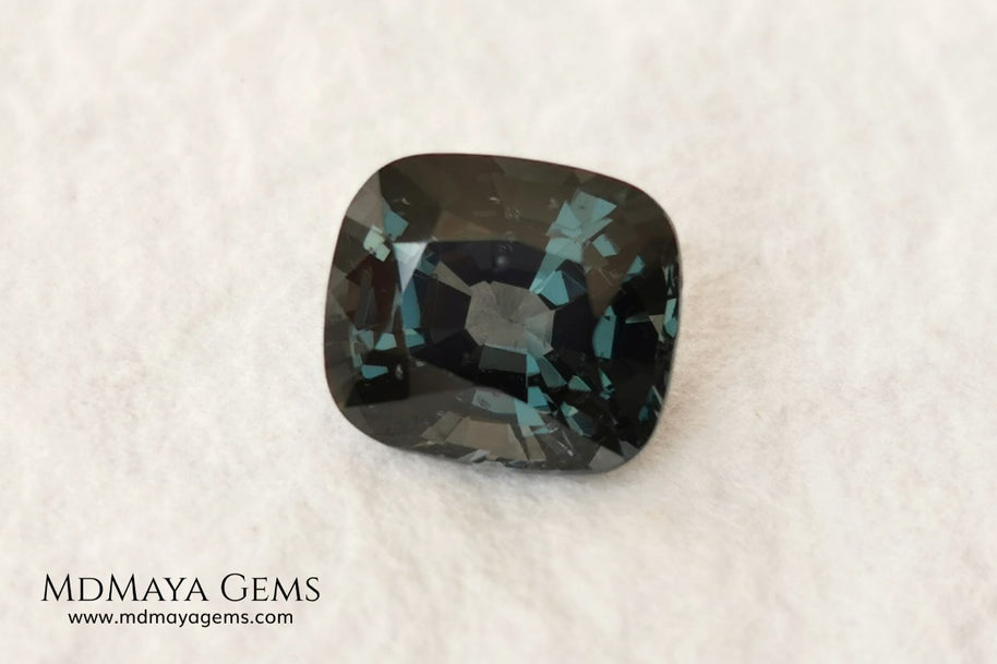 This grey spinel of 3.13 carats is a true rarity for collectors and bespoke jewelry lovers alike. Its antique cushion cut enhances the depth of its color—a dark, greenish-grey tone that shifts beautifully under different lighting conditions.
