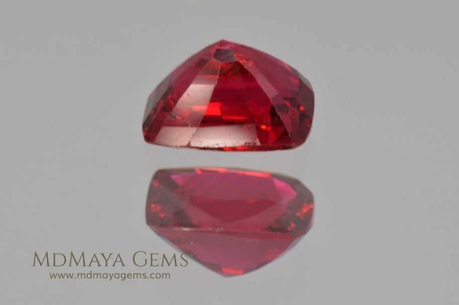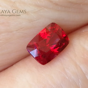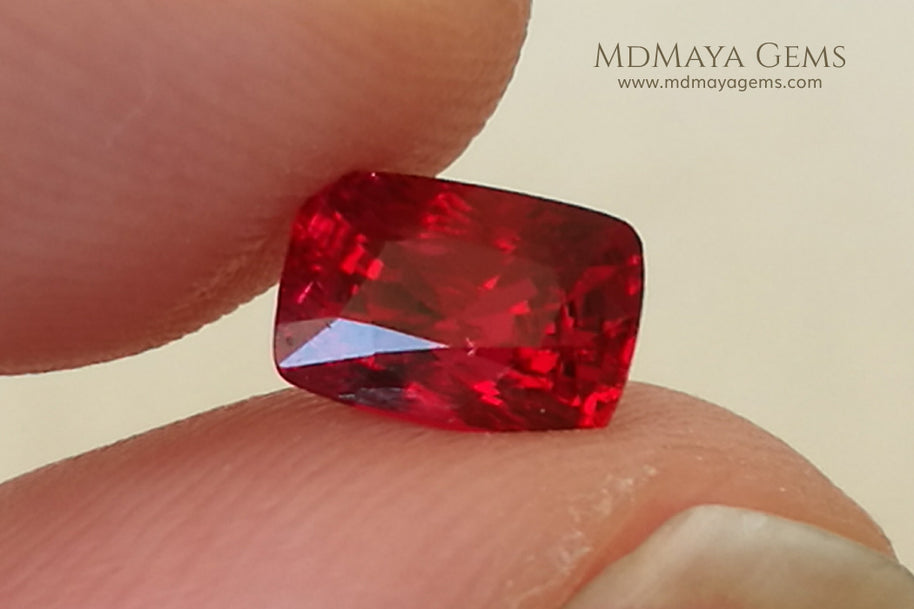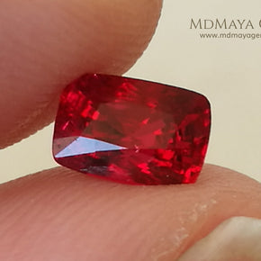 Fiery 0.92 ct cushion-cut spinel from Burma with vivid red color and bright brilliance. Slight clarity, no heat, perfect for meaningful fine jewelry.