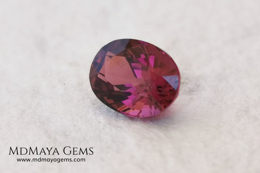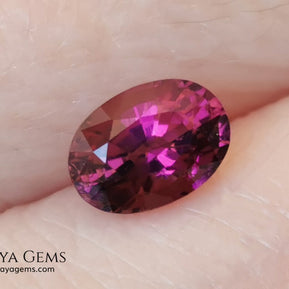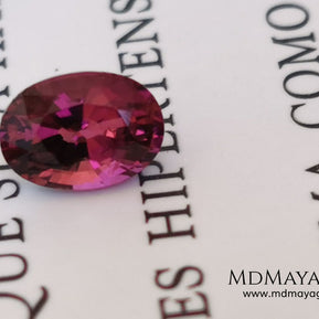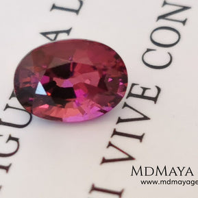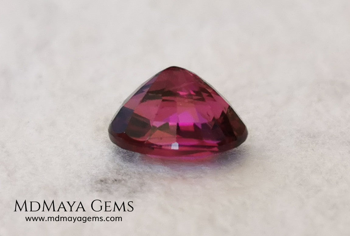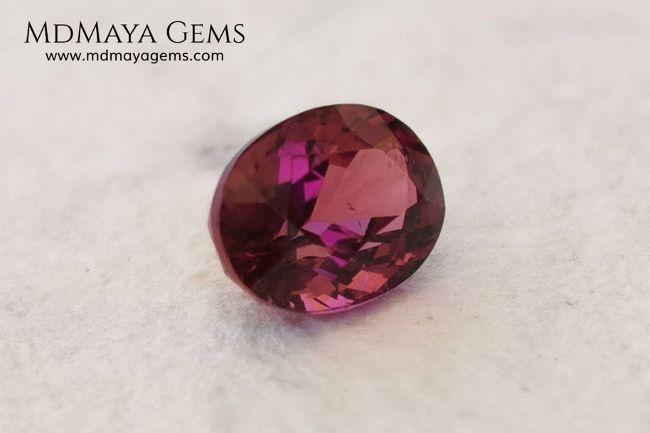 This 0.97 ct rubellite tourmaline from Mozambique may be under one carat, but it delivers a beautiful purplish-red hue (30 stpR) with medium tone (5) and moderately strong saturation (4). Its oval cut (7.05 × 5.06 × 4.34 mm) is balanced and luminous, bringing out the gem’s natural glow.