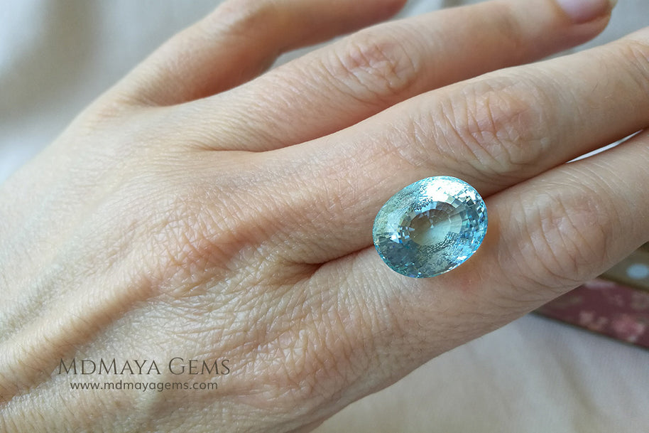 Large 11.20 ct aquamarine with vivid color, eye-clean clarity, and excellent cut. Untreated and perfect for a statement ring or elegant pendant.