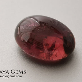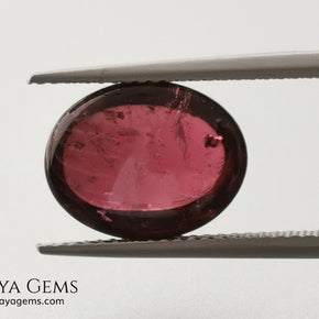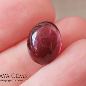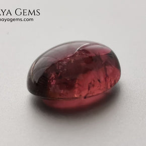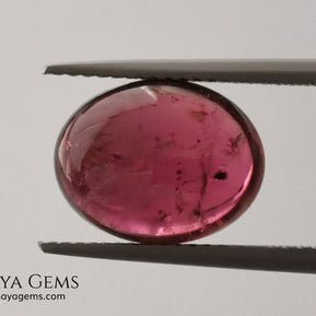 With a slightly purplish-red hue (31 slpR), medium-dark tone (6), and low saturation (2), this gem shows a soft, understated color that works well in classic or rustic designs. Its moderate inclusions and solid-liquid internal structures are visible but typical for natural tourmalines in cabochon form.