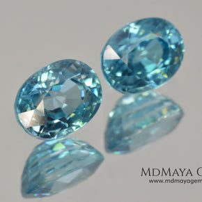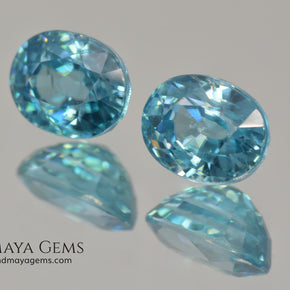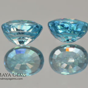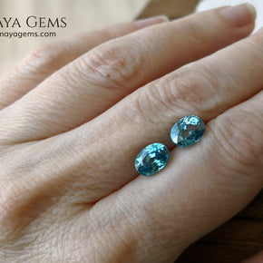 This stunning blue zircon pair totals 5.09 carats and features well-matched oval cuts with vivid, rich color and strong brilliance. Each gem displays excellent clarity and proportion—no windowing, just pure sparkle.