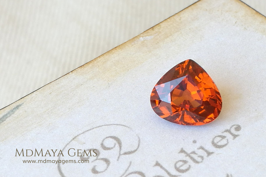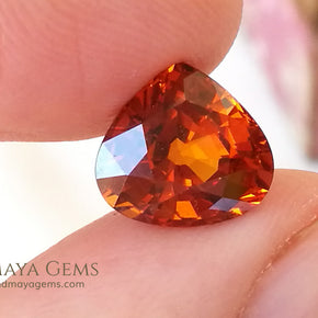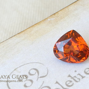 This exquisite 4.26 ct Spessartite Garnet from Namibia displays a rich, vivid yellowish-orange hue—among the most desirable colors in the garnet family. Its pear cut is perfectly proportioned, enhancing its brilliance and symmetry without any windowing.