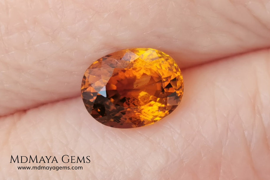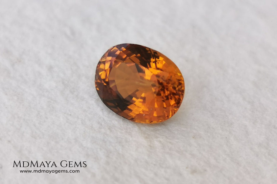 This 2.06 ct orange tourmaline from Tanzania offers a rich orangy-yellow hue in a classic oval cut. Its dark tone and moderately strong saturation create a warm, intense presence that stands out—especially in rings or larger custom pieces.