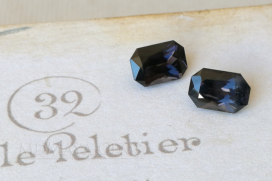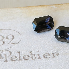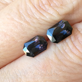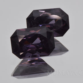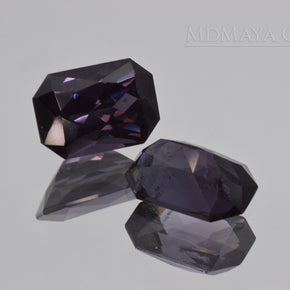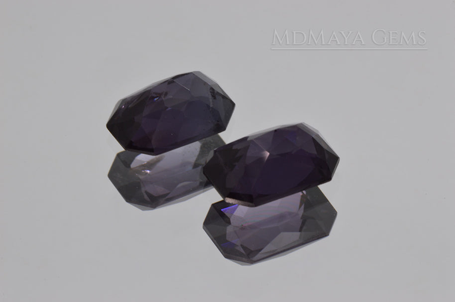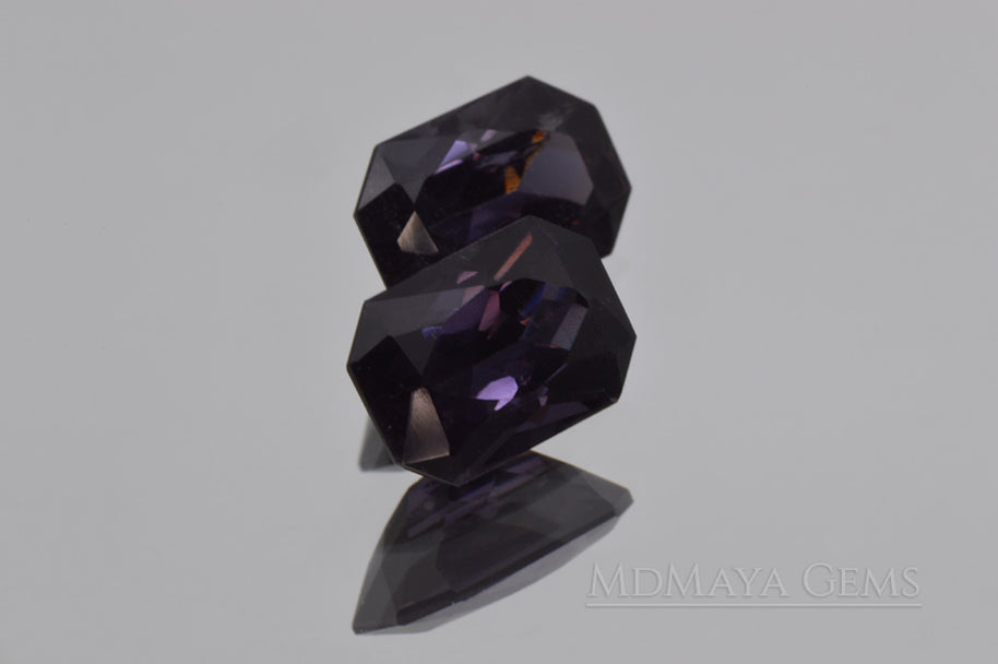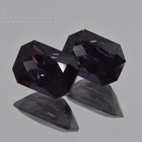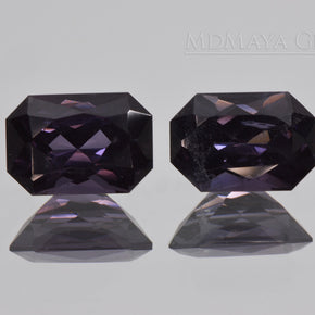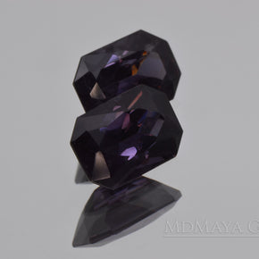 This exquisite matched pair of bluish violet spinels has a total weight of 2.66 carats, cut in harmonious octagon shapes that enhance their deep, complex tones. With subtle flashes of violet and blue under natural light, these gemstones offer a rich and mysterious aesthetic that pairs beautifully with both platinum and yellow gold settings.