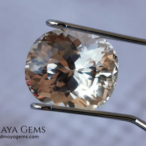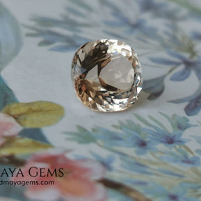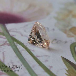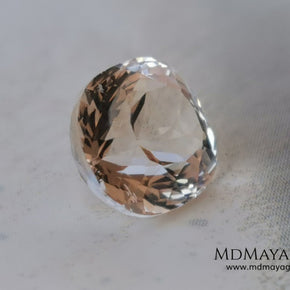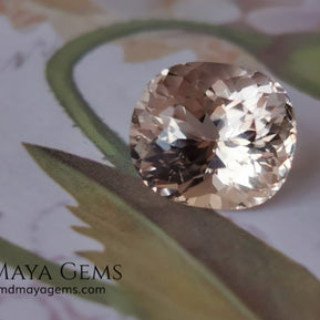 This natural peach morganite displays the soft salmon-to-peach tone typical of untreated material. Precision-cut in a Portuguese oval style, it features numerous facets that enhance its brilliance and light reflection — offering a captivating play of sparkle from every angle.