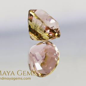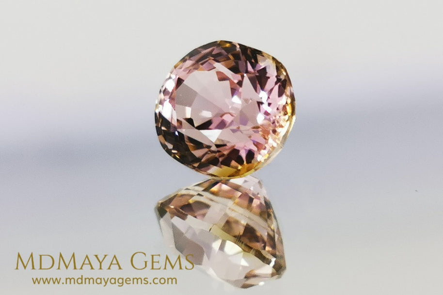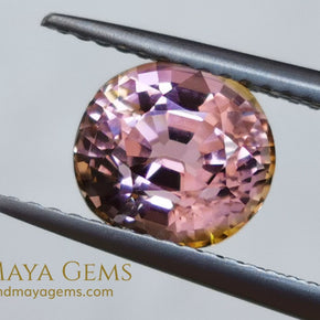This 2.29 ct bicolor tourmaline offers a vivid pink body color, illuminated by sparkling internal flashes and framed by a subtle golden halo. The effect is both romantic and dynamic, enhancing the stone’s brilliance from every angle.