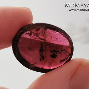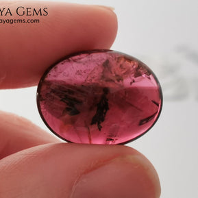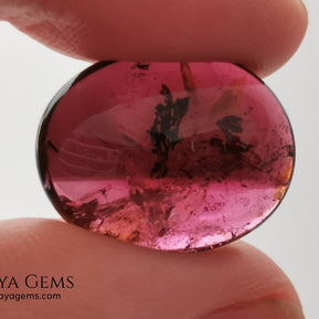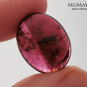 Large tourmaline rubellite, 16.08 ct, oval cabochon cut. This beautiful natural gem features two shades of color, one darker than the other. Although it has inclusions, it will be beautiful once mounted on any piece of jewelry you can imagine. And the best its price.