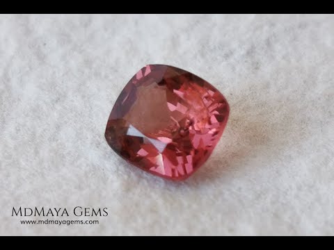 This beautiful Burmese spinel displays an elegant blend of red and orange tones with a medium-dark intensity, making it a captivating choice for custom jewelry. Its cushion cut enhances the gem’s natural sparkle, and while a fracture in the pavilion reduces its price, it does not compromise the gem’s face-up beauty.