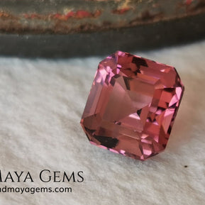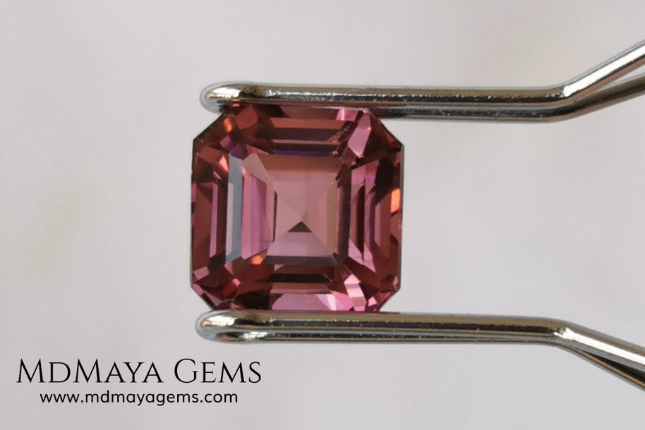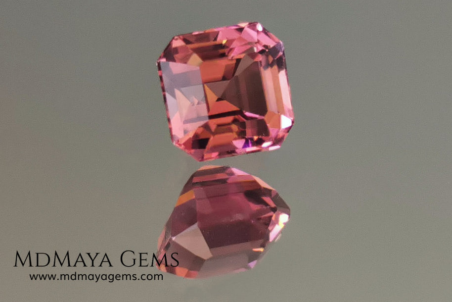 Beautiful Pink Tourmaline from Mozambique. This 1.45 ct gemstone features a brilliant Asscher cut with excellent proportions and eye-clean clarity. Its bright pink tone—slightly purplish red—displays lively behavior under all types of lighting, from daylight to incandescent. The saturation is soft but appealing, and the gem shows great brilliance thanks to the precision of its faceting.