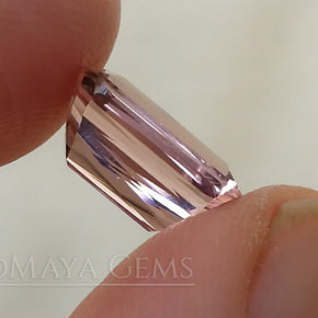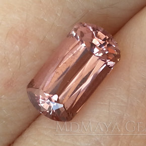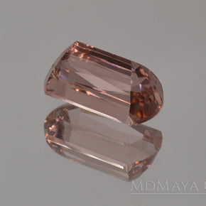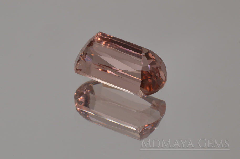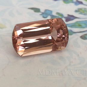 Bright peach-pink tourmaline with excellent cut, proportions, and vivid color. A stunning fancy-cut gem for bespoke jewelry.