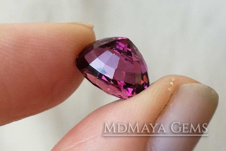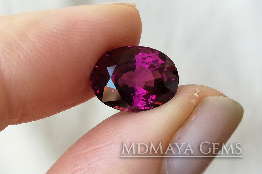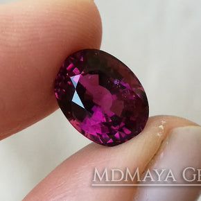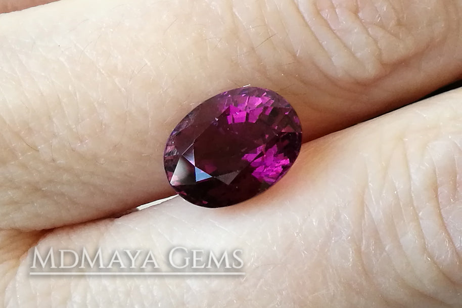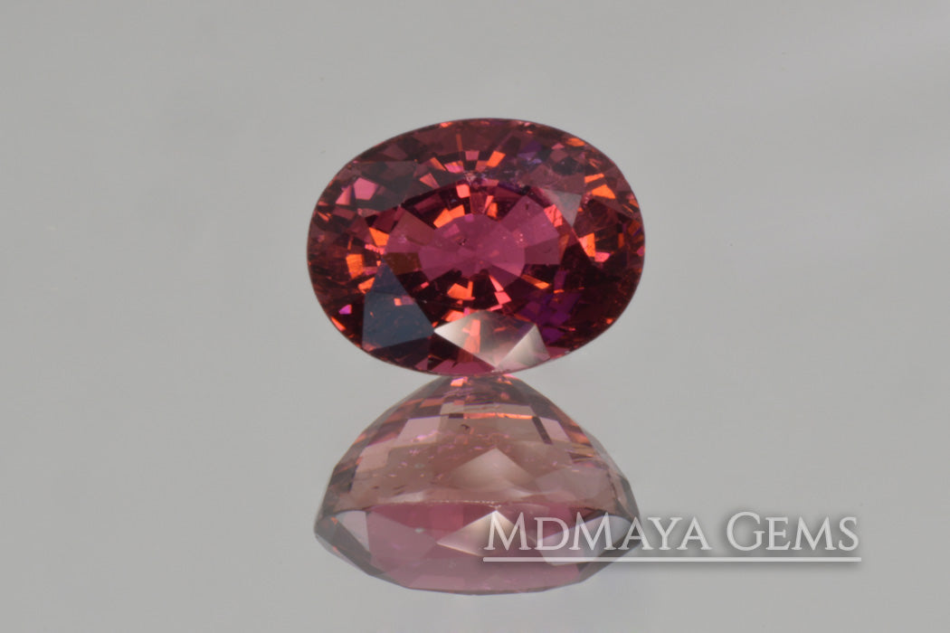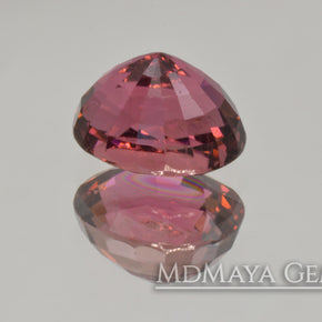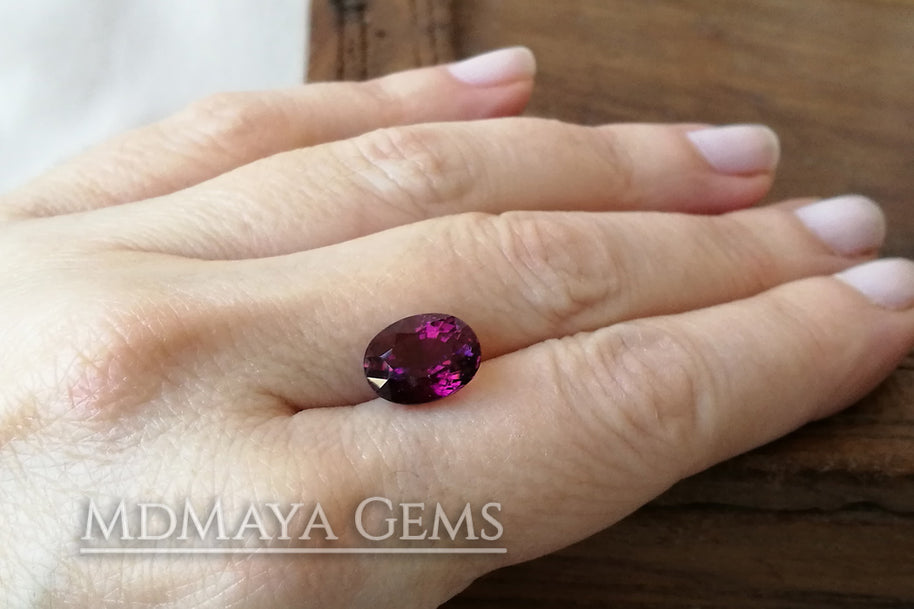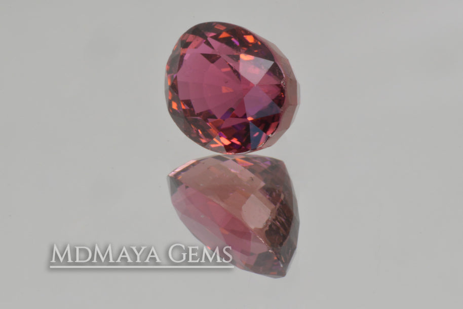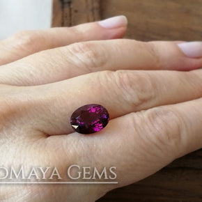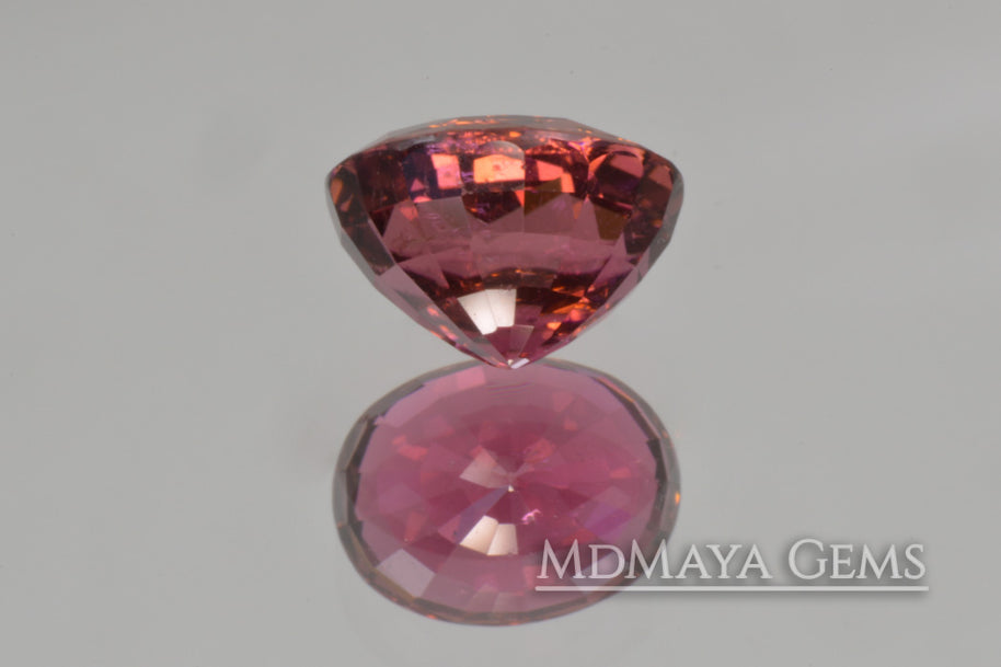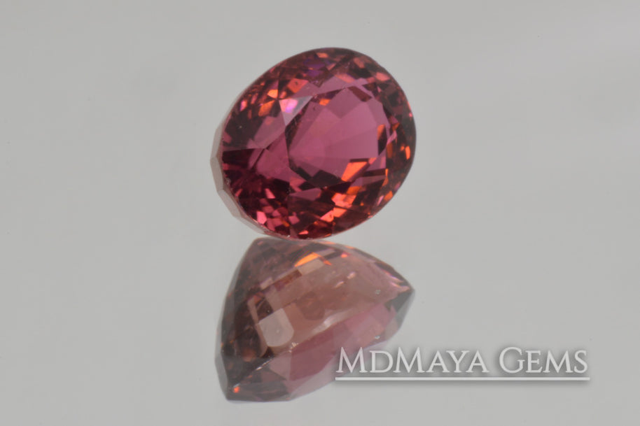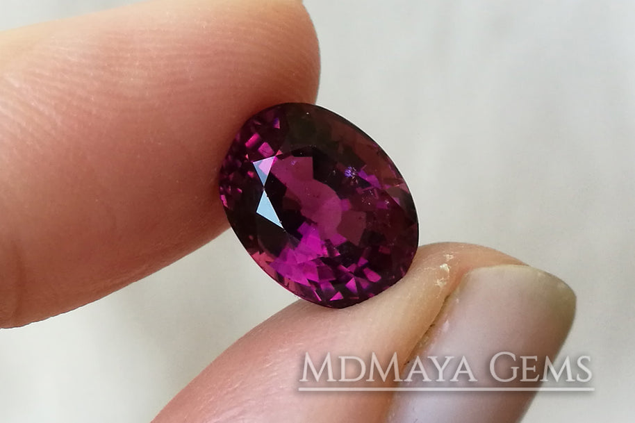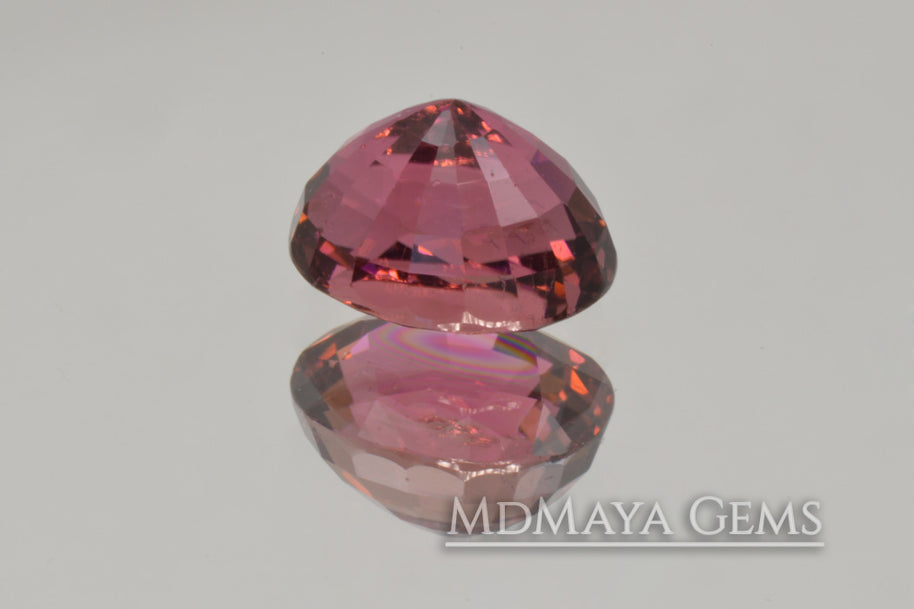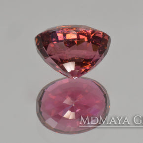 This 4.90 ct rubellite tourmaline from Mozambique features an oval cut with excellent proportions (11.15 × 8.51 × 7.61 mm), no windowing, and high-quality polish. Its medium-dark tone (6) and slightly brownish-reddish saturation (2) create a refined, understated palette—revealing dark pinkish-red hues in daylight and a purplish-red shift under incandescent light.