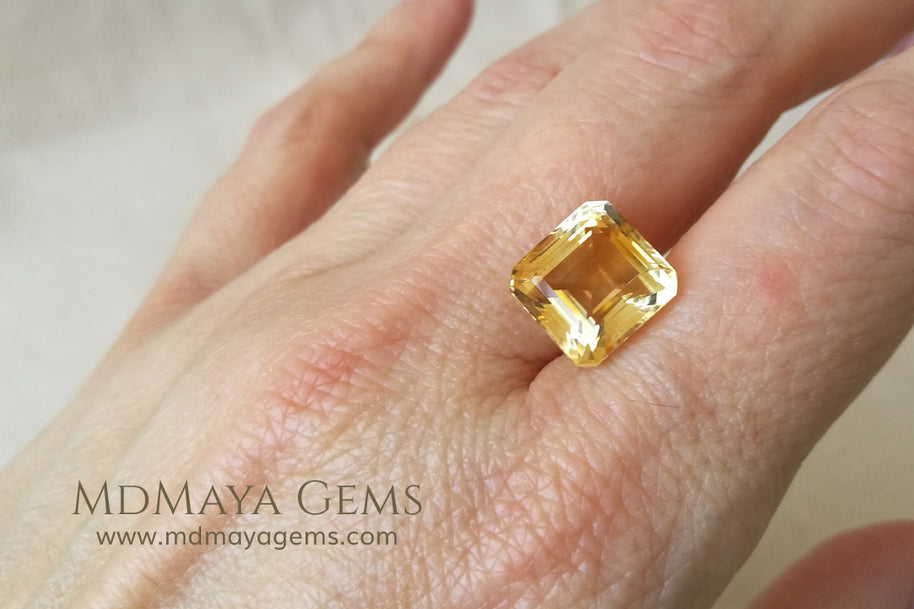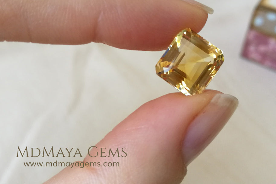 Brilliant golden yellow Citrine, 6.80 ct. Square cut with excellent proportions, eye-clean clarity, and lively brilliance — perfect for custom rings or bold designs.