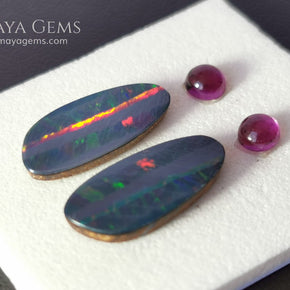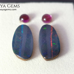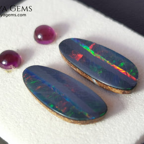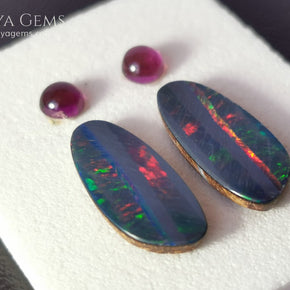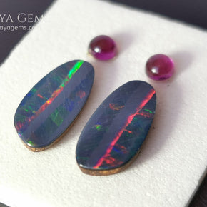 This vibrant set features a pair of brilliant Australian opal doublets, each bursting with electric flashes of green, blue, red, orange, purple, and yellow. Their elongated shape and dazzling play-of-color make them ideal for unique earrings or pendant designs.