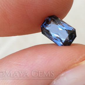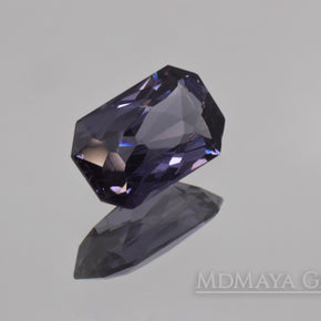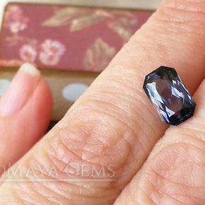 This 1.42 ct spinel showcases a beautiful blend of violet and greyish blue hues, with a medium tone and a subtle silky glow. The octagon cut enhances its brilliance and gives it a timeless shape that suits a wide variety of jewelry designs. It displays a refined interplay of colors, changing slightly under different lighting—a trait seen in some Sri Lankan spinels.