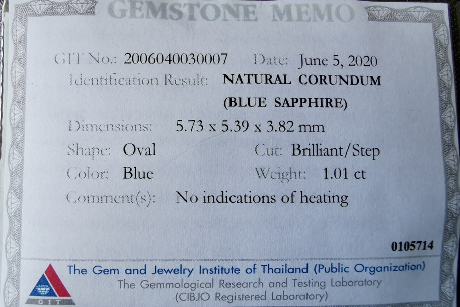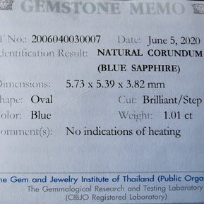Certified Untreated Royal Blue Sapphire 1.01 ct · Oval Cut