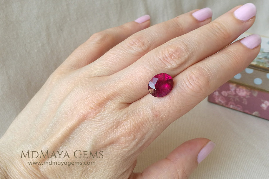 In the world of colored gemstones, color is king—and this 5.96 ct rubellite tourmaline proves it. With a rich purple-red tone and vivid saturation (grade 6), this gem glows with an intensity that rivals fine ruby, but with the charm and uniqueness of tourmaline.