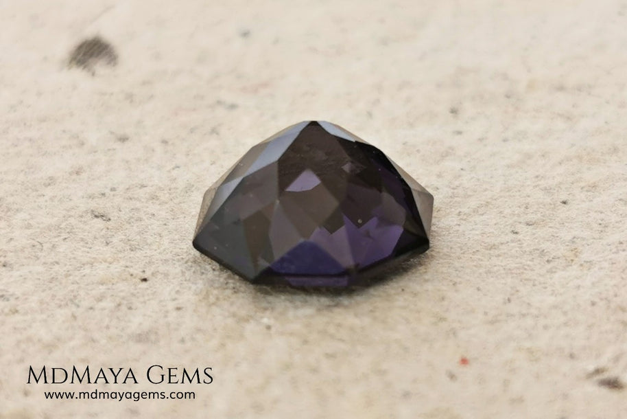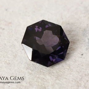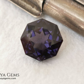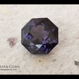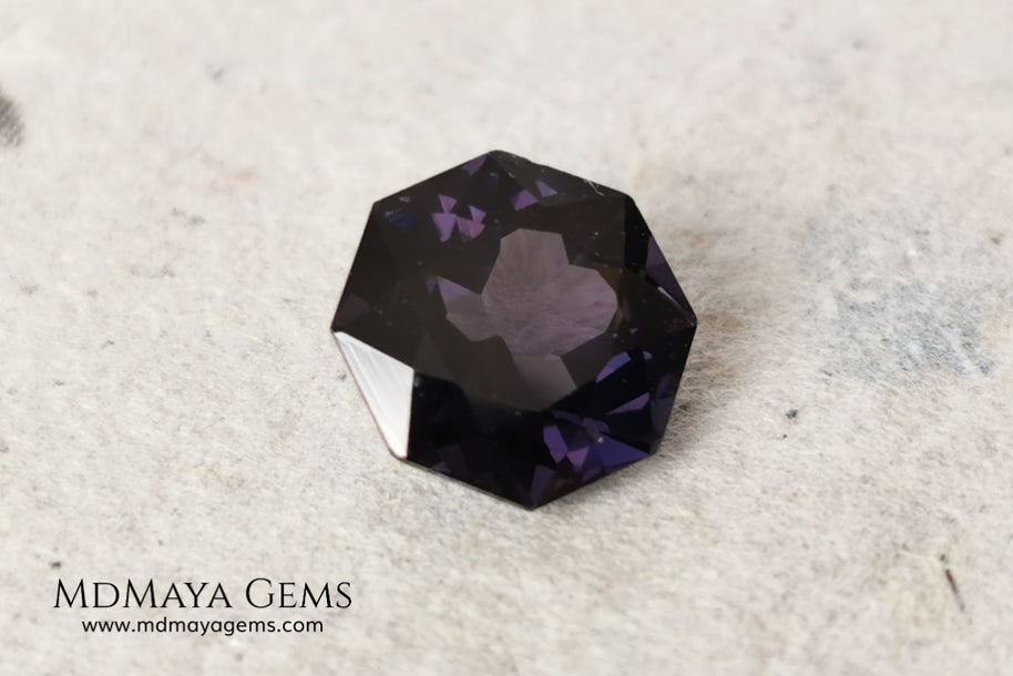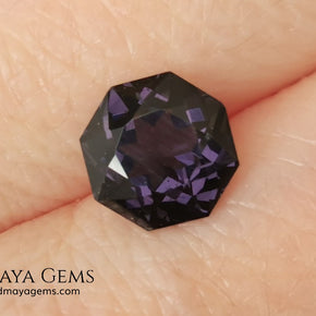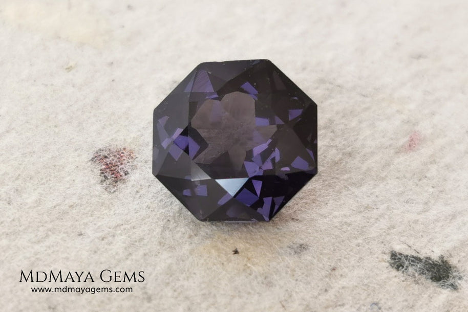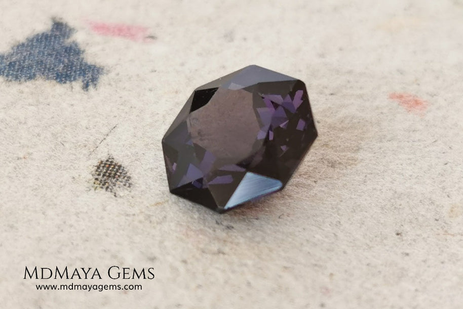 Exceptional 2.72 ct violetish purple spinel in a modern octagon cut. Untreated and full of sparkles, it shows a deep purple hue in daylight and bright violet tones under warm light—ideal for a bespoke engagement or wedding ring.