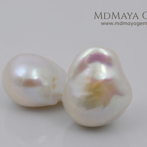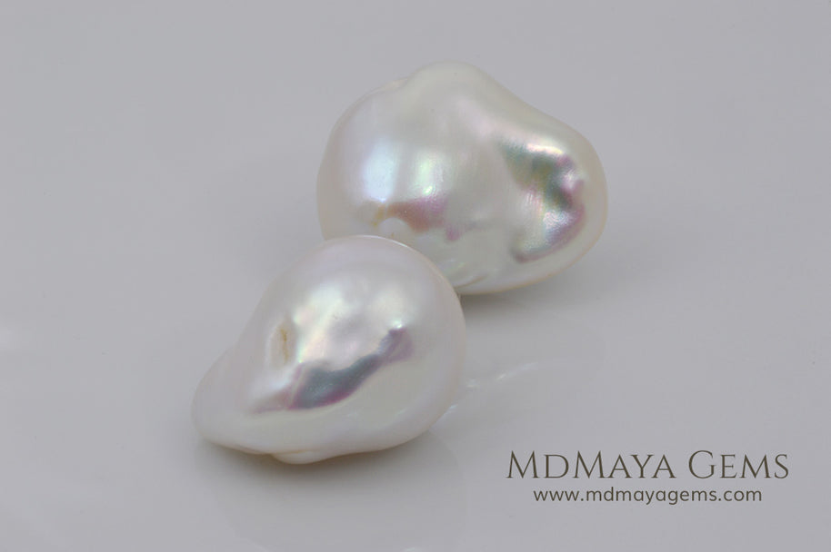 High-quality white baroque freshwater pearls with pink, yellow, and blue overtones. Perfect for custom earrings or unique jewelry pieces.