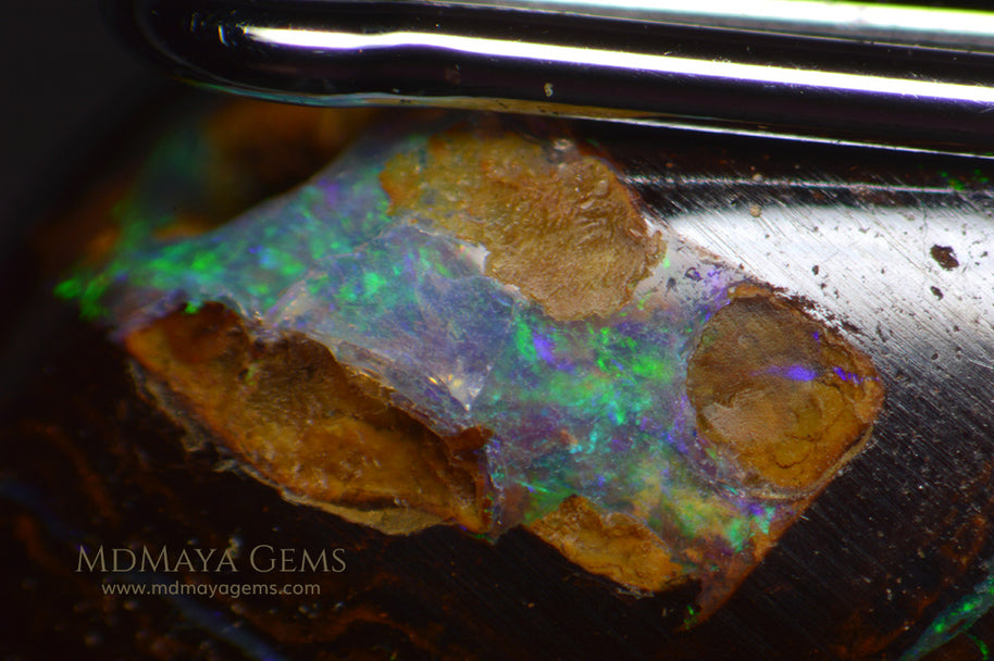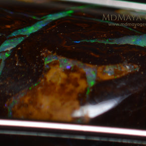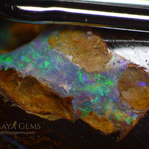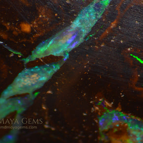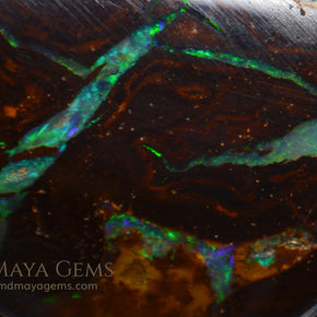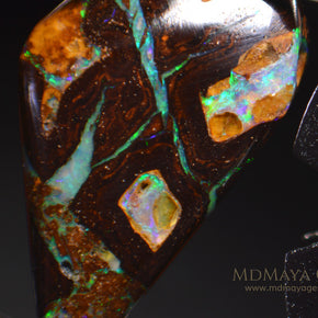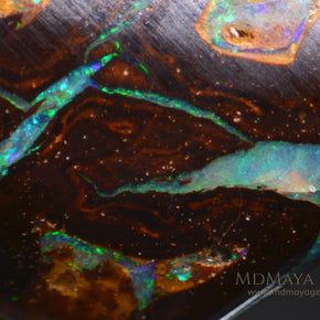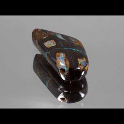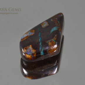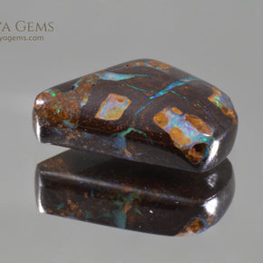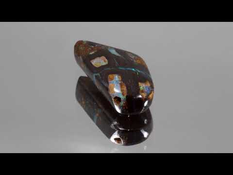 This 6.65 ct Boulder Opal from Yowah, Queensland (Australia), is a freeform cabochon showcasing a dark brown matrix traversed by delicate neon green and blue veins. While it doesn’t display a particularly striking or intricate pattern, its natural charm and origin make it an appealing gem for collectors or anyone looking to create a one-of-a-kind pendant. Each Yowah opal tells its own quiet story—this one through subtle flashes of color.